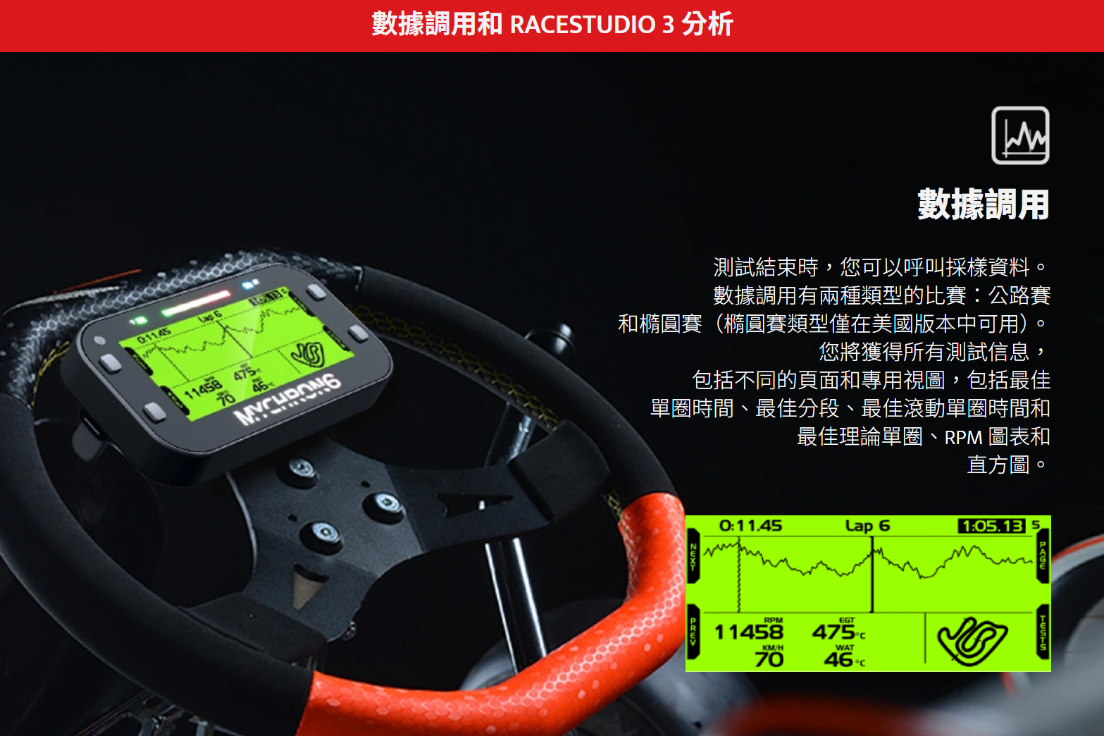 顯示器也始終清晰易讀。 螢幕採用新的頁面佈局,其中顯示每個扇區時間的增量長條圖和相對於參考圈的增量時間。