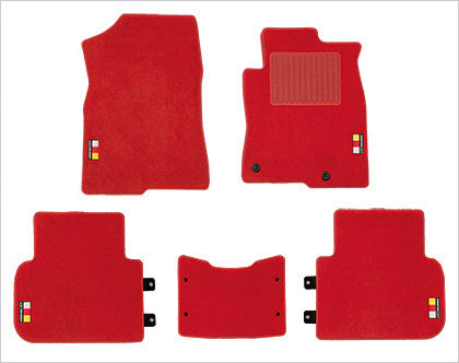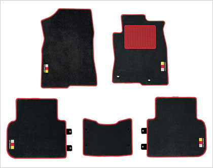 The surface is made of durable nylon material, and the bottom is made of synthetic rubber (SBS) to prevent floors and car mats from sliding. Additionally, a heel pad is included on the driver's seat to reduce wear and tear. The Mugen logo is embroidered in four locations on the front and rear floor mats.